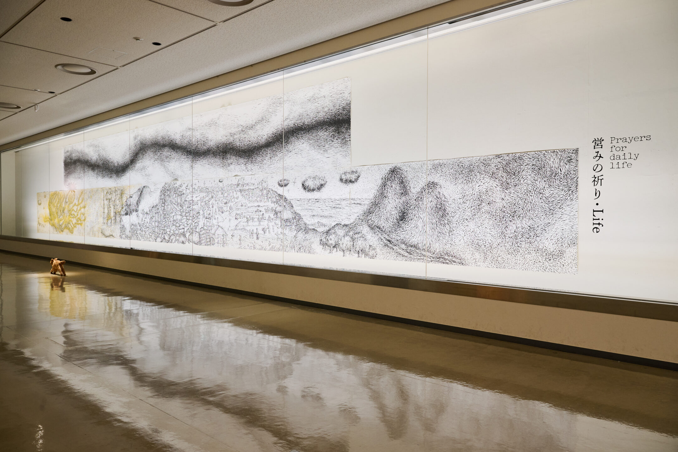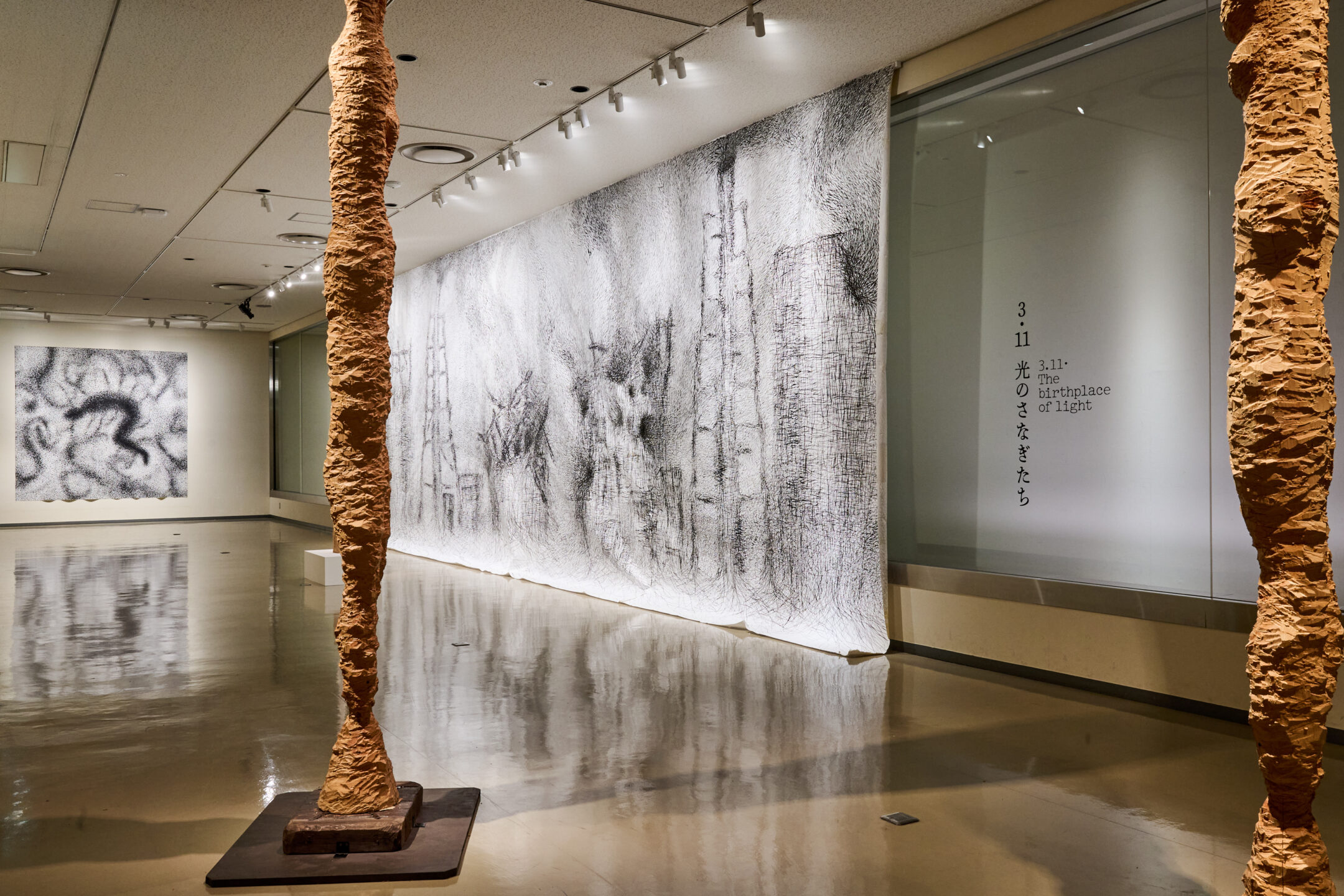 今回の展覧会は、5つの展示室で構成。前半2室は東日本大震災を物語るドローイングを中心とした作品展示です。