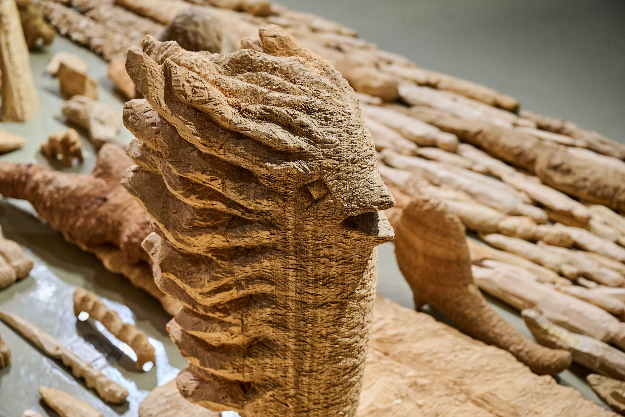 後半の3室は、質感や触感を楽しめる触れる展示をはじめ、新作を含めた奈良に住む安藤さんの木彫の世界を感じることができます。