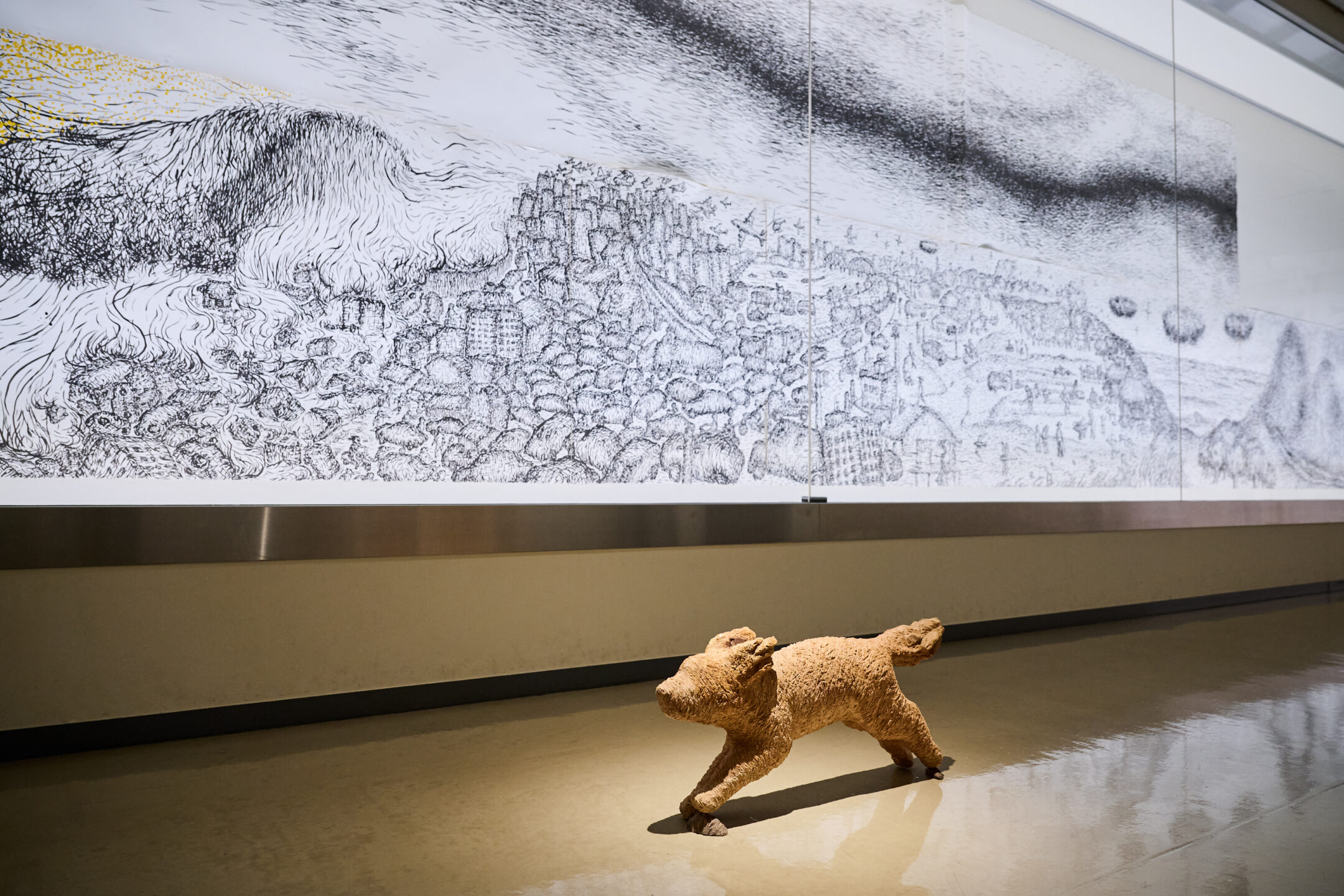 東日本大震災の津波に流された愛犬をモティーフにした作品