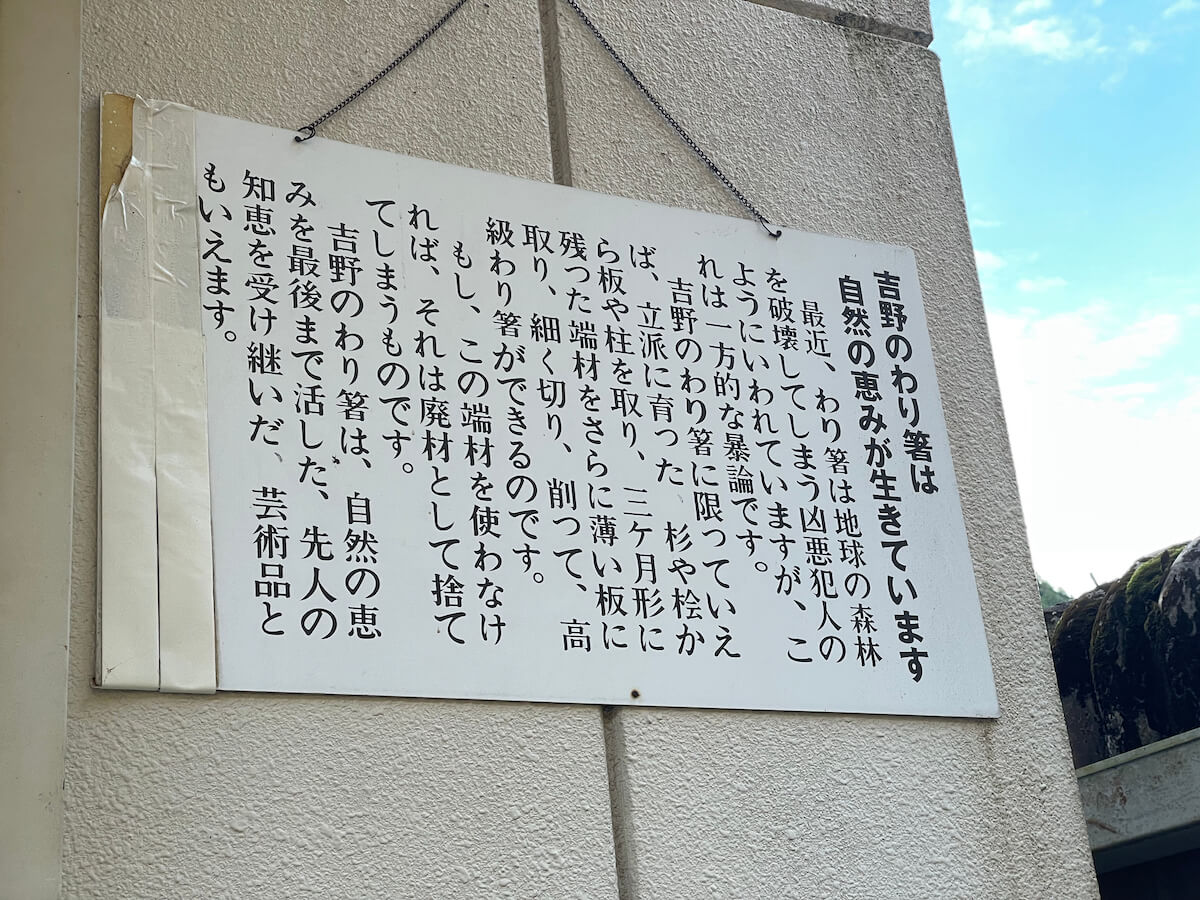 工場入り口に掲げられた割り箸づくりに込められた想い(吉野製箸 小林)