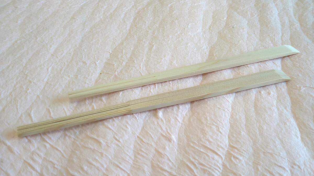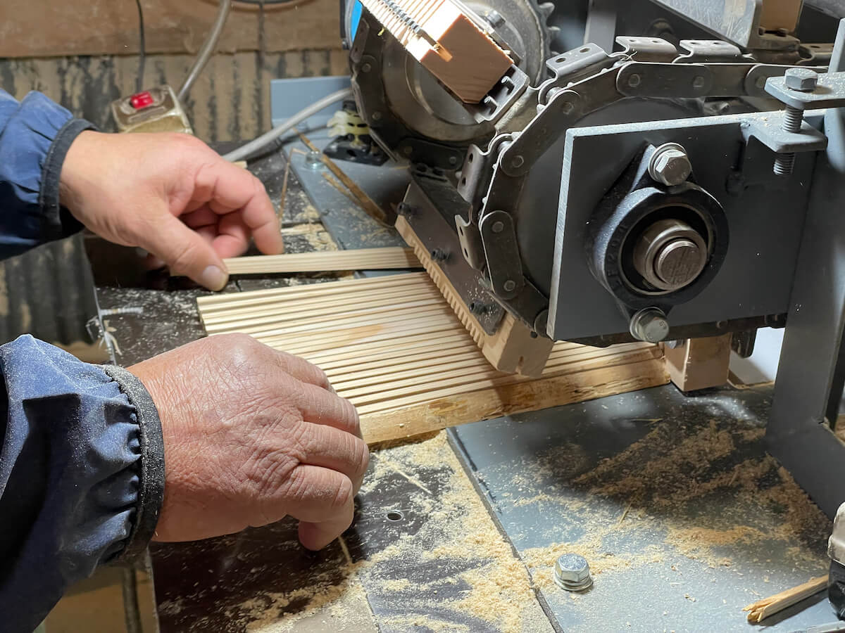 密植による自然な枝枯れや枝が細いうちに打ち落とすことで、節もほぼありません。吉野の間伐材は、一般的な間伐材とは異なる、とても良質な素材なのです。そしてこの間伐材を加工したあとに出る端材を使って吉野の割り箸がつくられているのです。