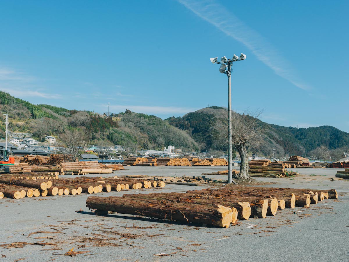 桜で有名な吉野山や万葉集ゆかりの宮滝など、美しい景色と長い歴史を持つこの町には、近隣の村々で伐採されたスギやヒノキの原木を運ぶのに利用された吉野川の左岸に、製材団地「吉野貯木」が広がり、原木市場や製材所が数多く建ち並んでいます。