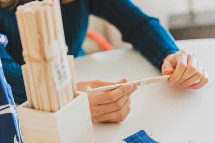 In November 2019, a project to upcycle the final leftover pieces from the chopstick making process commenced. The project was named “Hamidashimono.” Using leftover wood from a chopstick factory in Yoshino Town, Nara Prefecture, they produce and sell kits that are designed with the intent that customers whittle away the leftover wood and create their own original waribashi chopsticks.