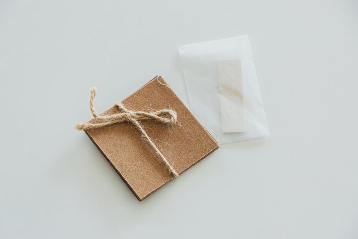 まず、吉野スギの容器に、箸工場から出た吉野ヒノキの端材が50本入っています。最後に残った端材なので、形はバラバラですが、削ってもらうと25膳の箸ができます。それと、吉野の和紙工房・植和紙工房で作ってもらっている箸帯が25枚。箸帯で2本を留めることで、割り箸を割る潔い感覚を伝えることができ、割り箸であることの意味が出てくると考え、箸帯を入れることにこだわりました。