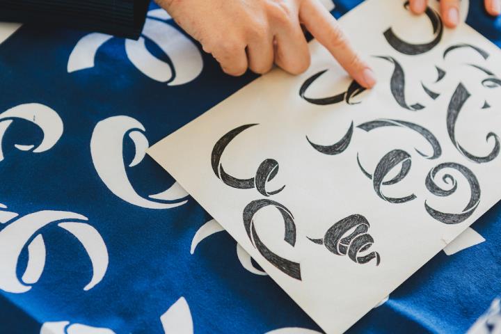 手ぬぐいはキットを包むだけでなく、木を削る時にテーブルに敷いてもらう用途もあります。削りカスをまとめたり、出来上がった箸を拭いたり、何かと万能に使えるんじゃないかなと思います。手ぬぐいの模様も、木の削りカスの形をパターンにしました。初めは気づかないかもしれませんが、キットを使った時に気づく、驚きの瞬間をつくれたらと思いデザインしました。