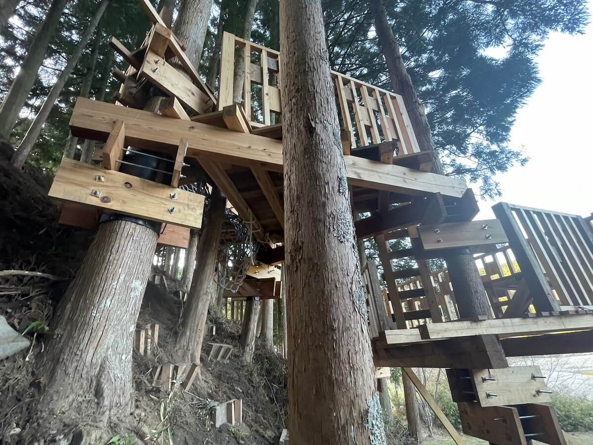 完成したツリーハウス「梓」で遊ぶ子供たち