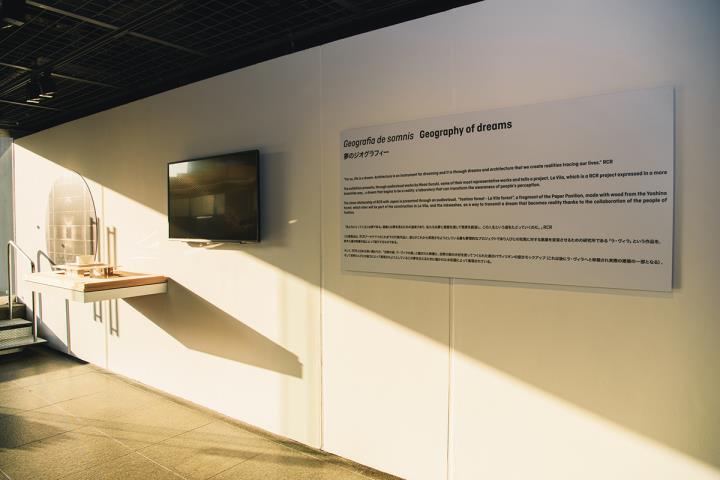 この展覧会では「RCRアーキテクツ」(以下、RCR)が、スペインのカタルーニャ地方で進行している「ラ・ヴィラ」プロジェクトを紹介しています。「ラ・ヴィラ」は「夢」をテーマに、人々が集い、自然を体感し、「開かれた研究の場(ラボラトリー)」が作られることを標榜し、「森林と水の流れ、そして記憶の住まう土地(ジオグラフィー)」に、研究施設や工房、宿泊施設、パビリオンなどを配する一大プロジェクト。その広大な敷地は、140万平方メートル(東京ドーム30個分)にも及ぶのだとか。