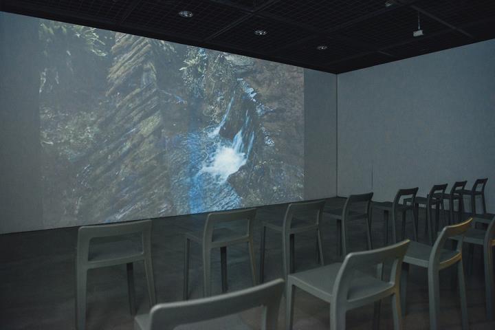 その奥では、RCRが2017年に吉野を訪れた時の映像「吉野の森、ラ・ヴィラの森」の映像が流されています。バルセロナを拠点に、建築写真家として活動する鈴木久雄氏が手がけた映像は、RCRの作品とリンクするように、吉野の自然と寄り添い、そして、神々しいものでした。