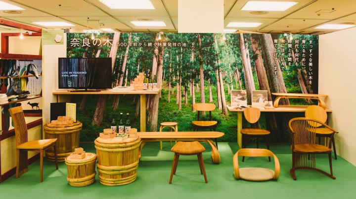 전통 공예품과 요시노스기를 사용한 가구가 모인 나라현 부스