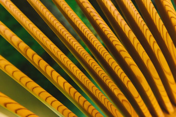 一方、平井健太さんが奈良県川上村に立ち上げた「studio Jig」は、アイルランドのアーティストの元で修業して培った曲げ木技術「Free form Lamination(フリーフォームラミネーション)」を吉野スギの家具製作に応用。しなやかな弾力を持つ吉野スギの薄い単板をミルフィーユ状に何枚も重ね、型を使用しない製法を取ることで、既存の家具デザインの概念を覆す、美しい曲線美を持った自由度の高いデザインを実現しています。平井さんもまた、森さんと同様に、吉野スギに魅力を感じて奈良県に移り住んできたクリエイターのひとりでした。