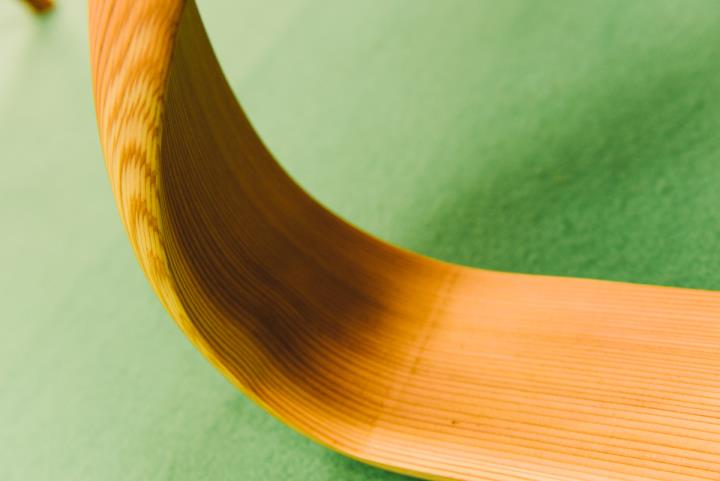 吉野スギの薄い板を15枚重ね合わせた美しい曲線のフレーム。