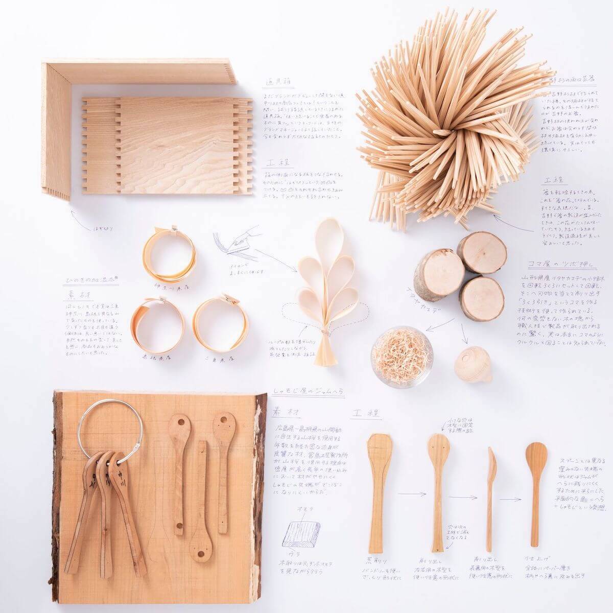 2019年11月に中川政七商店 渋谷店で実施された、ものづくりを解剖した企画展。吉野杉の両口菜箸も展示された。