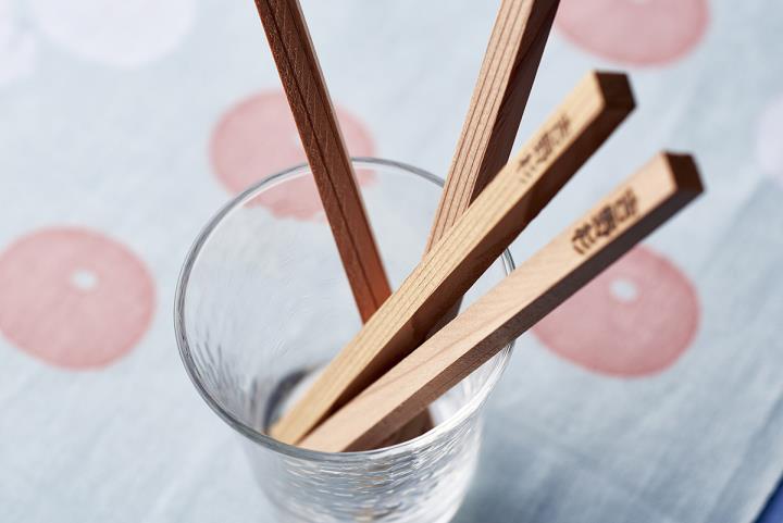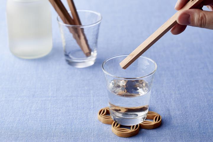 同じく吉野杉箸商工業協同組合が手がける『樽酒スティック』はお酒好きに全力で薦めたい一品。香り抜群の吉野杉をスティック状にしたこのプロダクトは、グラスに注いだお酒に浸けることで樽酒のような香りづけができるというもの。樽酒の独特の風味を家庭で再現でき、いつもの晩酌がさらに楽しめること間違いなし。水で洗ってしっかり乾燥すれば繰り返し何度でも使えるのも嬉しいところです。