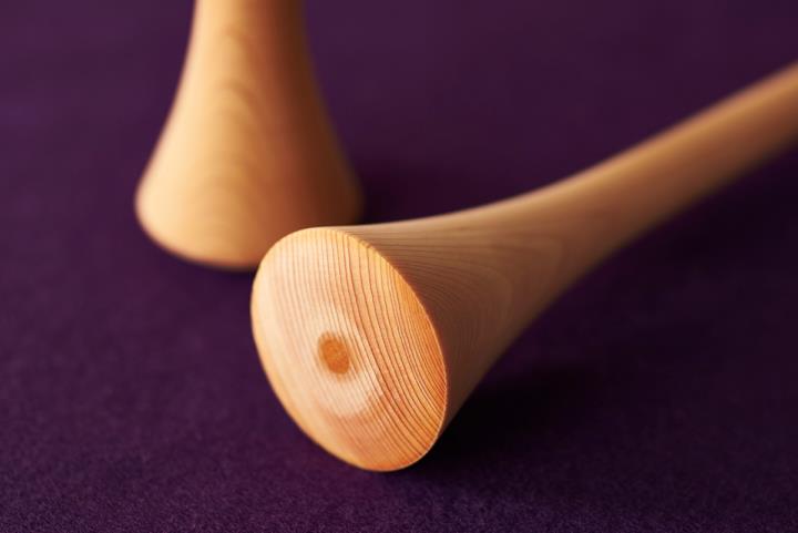 奈良県桜井市にある木工品製造所『夢咲花(ゆめさか)』が奈良県と共同開発したこのプロダクト。名前からしてとても丈夫そうですが、それもそのはず。杉の丸太を薄く桂剥きしたものを何枚も重ね合わせ、樹脂を浸透させて、元の厚さの1/3にまで圧縮した資材「杉強化LVL」が使われています。金属並みの強度の高さを持ち、はっ水・耐久性も抜群!木のことを熟知している職人が1本1本丁寧に削りあげ、1日10本程度の生産量だというこのプロダクト。使えば使うほど手に馴染んでくることでしょう。