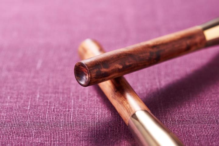 大正14年から”筆“を作り続けている老舗「株式会社あかしや」が奈良の木材と出会ってつくりあげたのがこの『化粧筆』。木製の商品のなかでも珍しく、木の「こぶ(※)」の部分を柄に使用しているので、独特の木目模様・色合いのプロダクトになっています。オイルと蜜蝋(みつろう)で仕上げられているので高級感を感じられ、目を引く一品に。これでお化粧したら、お出かけ前から気分が上がること間違いなし!