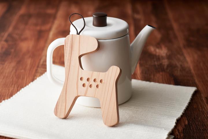奈良県といえば、やはり「鹿」。ということで鹿をモチーフにしたプロダクト『こげ鹿鍋敷き』をご紹介。可愛らしい鹿のシルエットに熱い鍋を置くのは、罪悪感があるかもしれませんが、思い切って鍋敷きとして使ってみてください。なぜなら、日々使い続けていくことで表面に焦げ目がつき、鹿の背中部分の鹿の子模様が浮き出てくるという仕掛けがあるからです!だんだんとリアルな鹿に近づいていく鍋敷きに、愛着が湧いてくることでしょう♪