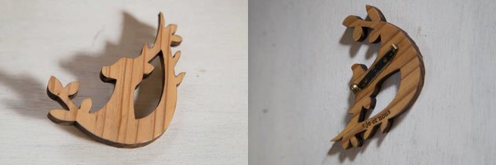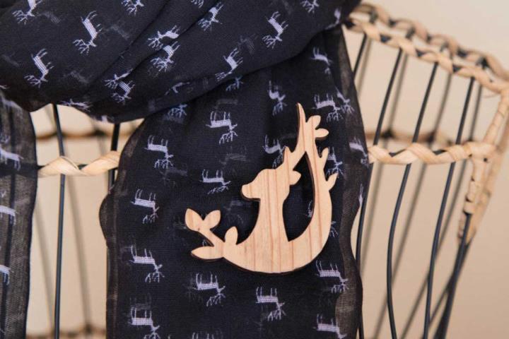 記念日やお祝いなど、ちょっとした特別な日には、胸元を華やかに演出してくれる『鹿のブローチ』がおすすめです。奈良の古道具と雑貨の店「je ét nous(ジュエヌ)」のブローチは、吉野スギを使った優しい木目が特徴の鹿の横顔を象った気品溢れる一品。ストールやネクタイなどの小物との相性も良く、木の醸し出す落ち着いた印象を与えてくれます。