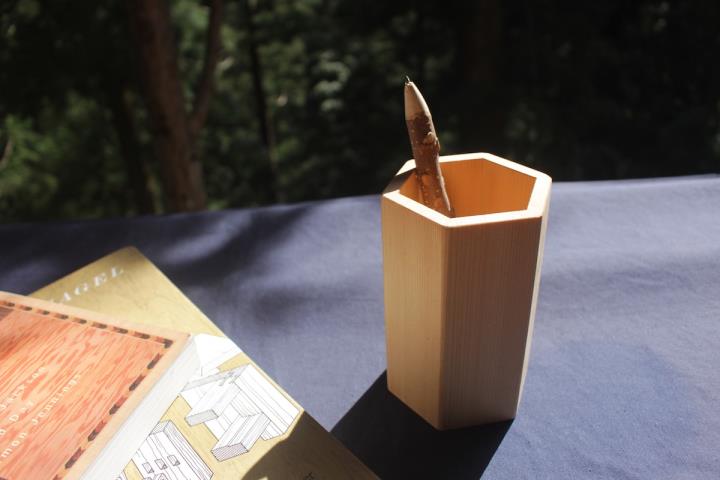 直線的で細やかな木目が美しい『ペン立て・箸立て』は、吉野ヒノキのシンプルながらも品のある表情を楽しめる一品。お部屋の中やテーブルに飾るだけで、すっきりと落ち着いた印象を与えてくれます。もちろんペンやお箸に限らず、様々な用途で使うことができるので、新築や引越しのお祝いなど、新生活のプレゼントとしてもおすすめですよ。