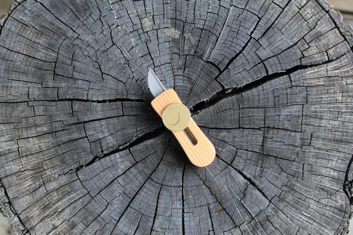 見た目の美しさと機能性を兼ね備えた携帯用デザインナイフ『ナーゲルスライドマルチ』は金物の街・兵庫県三木市の老舗刃物メーカー「FEDECA」の逸品。丸みのある刃先が特徴的で、切り絵やペーパークラフトのカット作業、プラモデルなどの模型工作にも使える曲線切り用のナイフです。軸には厳選された吉野スギを使い、緻密な木目と、美しい木肌が見た目の美しさをより際立てています。また、丸みのあるデザインは手になじみやすく、ちょっとした細かい作業もお手のもの。