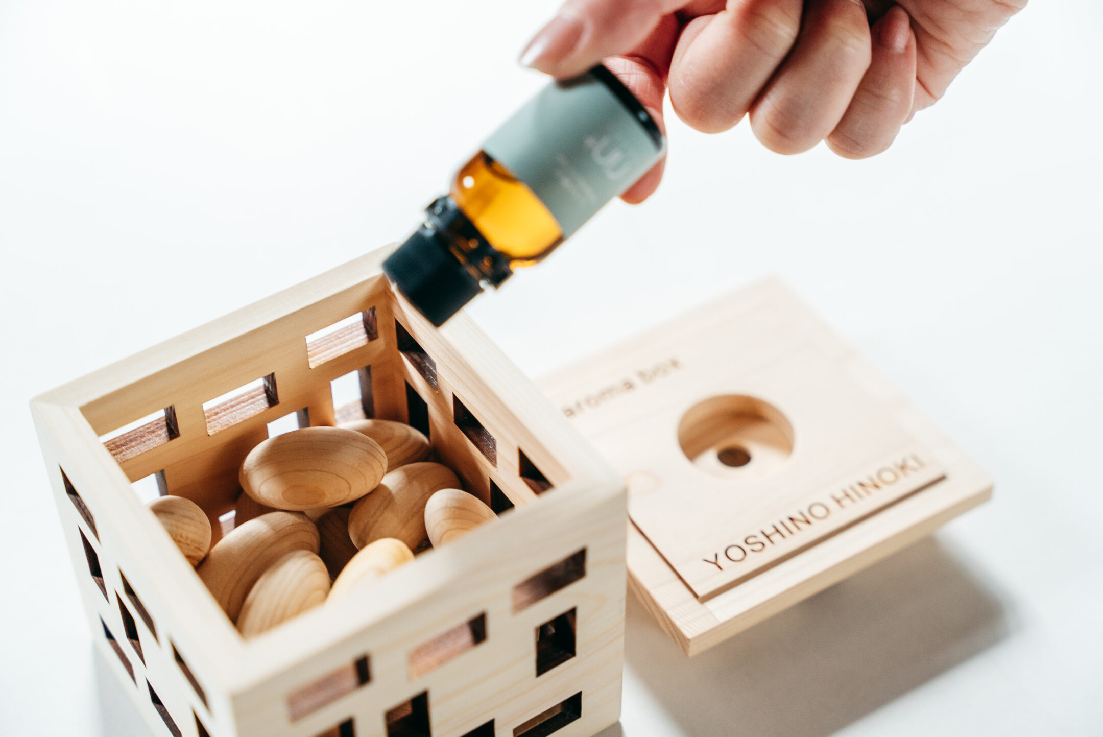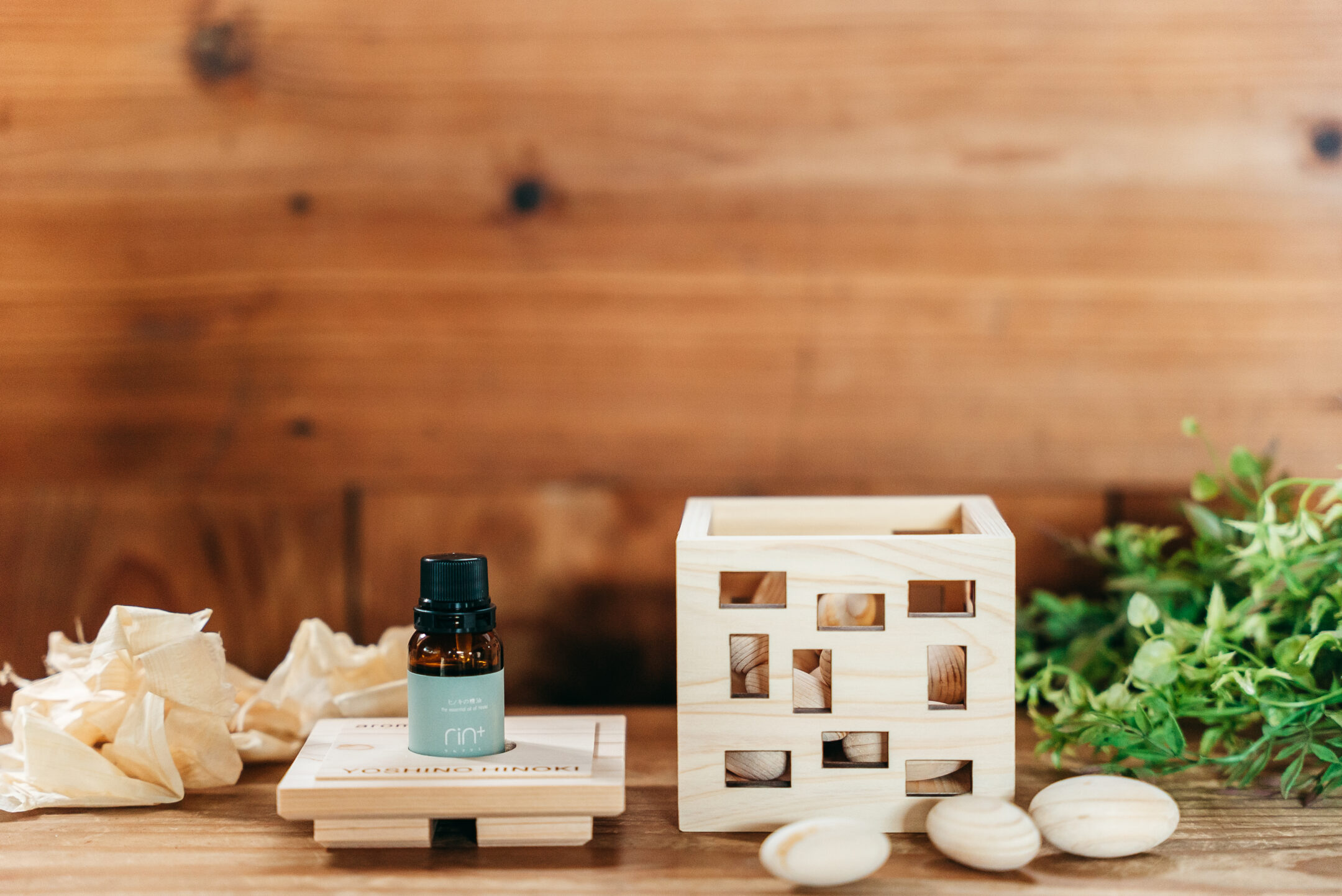 林業を営みながら、オリジナル木製品も手掛ける豊永林業株式会社オリジナルブランドRin+(リンプラス)の『ヒノキ アロマボックスセット』。セットに含まれるヒノキアロマオイルは、長い年月をかけ、大切に育てられた自社所有林で伐採された桧のみを使用。水蒸気蒸留法で凝縮したヒノキオイルを抽出したアロマオイルの香りは、まるで山中にいるかのようなリラクゼーション効果を提供してくれます。また、思わず手に取りたくなるコロンと可愛いヒノキ玉は、アロマオイルを垂らすことで天然のディフューザーに。インテリアとしてボックスを玄関や寝室に置くのはもちろん、ヒノキ玉をお風呂の湯船に浮かべれば、いつものバスタイムがちょっぴり特別な時間に。様々な場面で活躍するこちらのセットを使って、心と体をリセットしませんか?