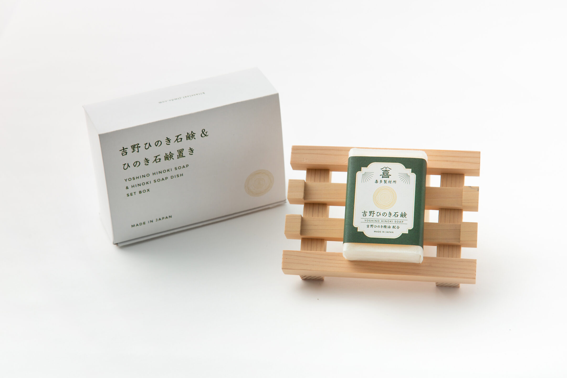 創業64年を数える喜多製材所が製造する、吉野桧の石鹸と石鹸置きのセット。良質な吉野桧のエッセンシャルオイルを原料にした無添加石鹸は、肌にやさしく、しっとりとした使い心地が特徴です。桧の清涼な香りは汗ばむこれからの季節にもピッタリ!水切れが良く抗菌・衛生に優れた吉野桧の石鹸置きは、シンプルながら空間のアクセントになり、石鹸とセットで使うことでより癒しの効果を高めてくれるはずです。何気ない日常生活の中でこまめにリフレッシュしたい方におすすめの日用アイテムです。