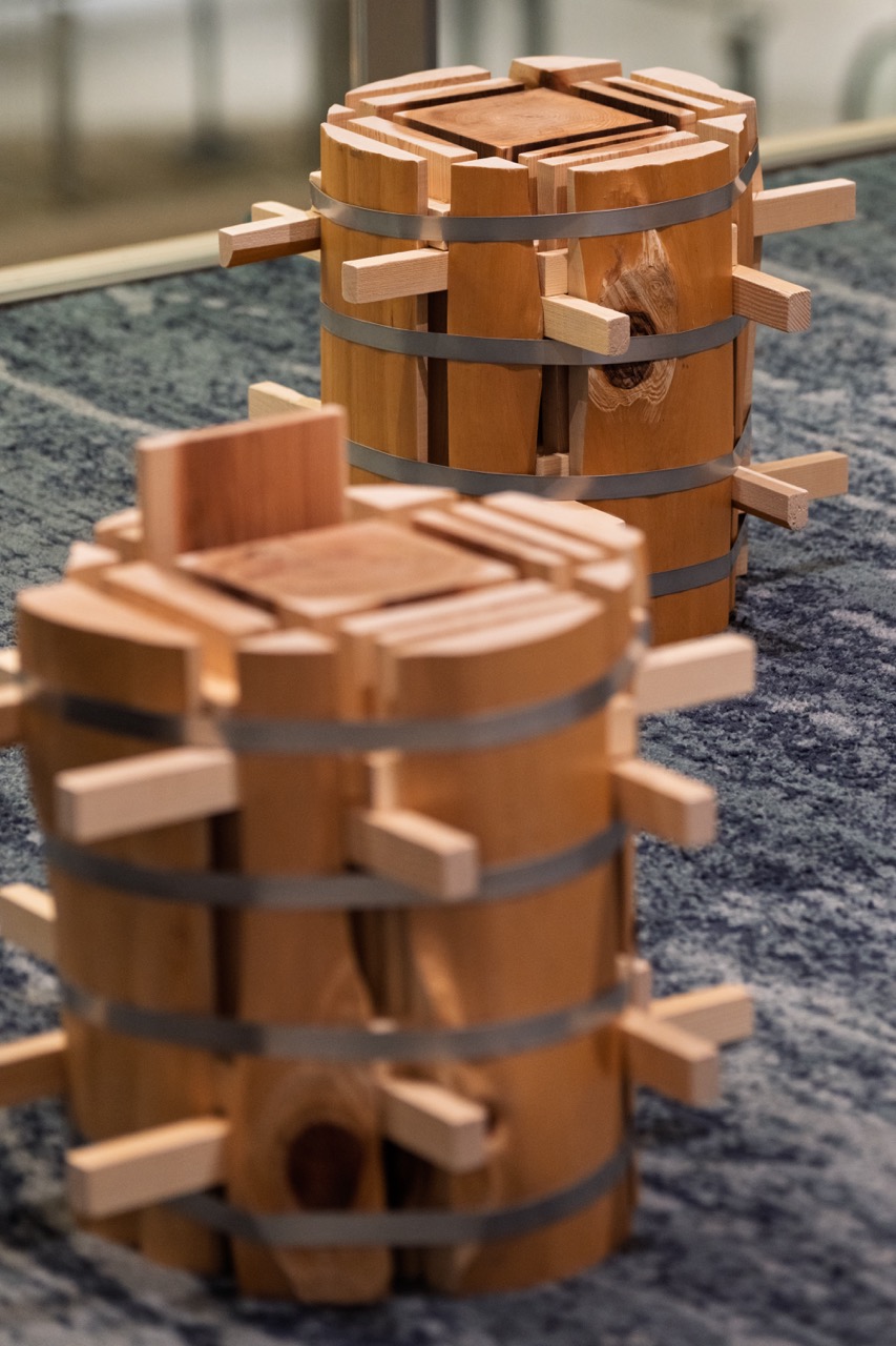 約500年前の室町時代から現代に受け継がれている「吉野林業」。その独自の育林方法によって育まれた吉野杉は、年輪が緻密で強度に優れ、美しい赤みを帯びた中心部の色合いが特徴です。本プロジェクトでは、そうした吉野杉の素材としての真価を、実際に触れて体感できる機会となっています。