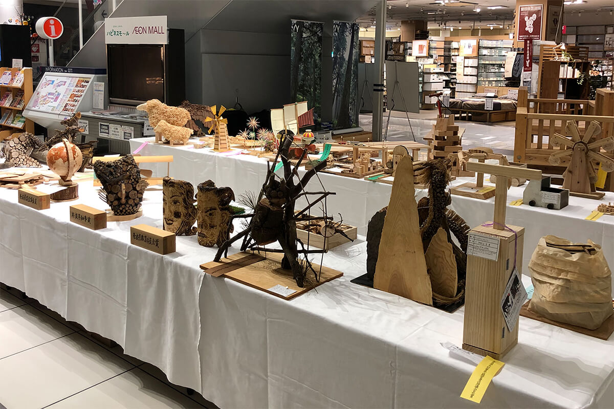 同じくイオンホールでは、大人も子どもも楽しめる「木工ワークショップ」を開催。実際に奈良の木を使った「棚」と「木琴」づくりに挑戦することができます。