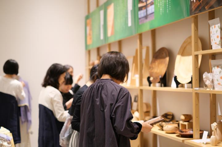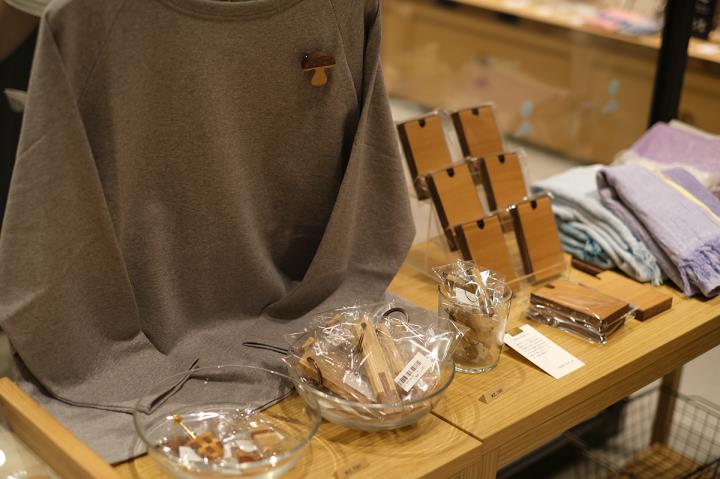 <旅する日本市・奈良>では、奈良県で活躍する木工作家が手がける、奈良の木を使った様々なプロダクトがラインナップ。初日に伺った店内にはすでに、興味津々に商品を手に取る、観光客やお仕事帰りのお客さんで賑わっていました。夏から秋へと変わるこの季節、店内にはストールや冬物のアクセサリーが並び、木の温もりと相まって暖かな雰囲気を楽しむことができます。