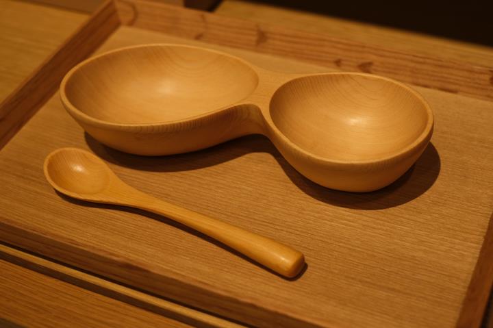 店内の棚に並べられた作品には、奈良からやってきた木製の食器がズラリ。吉野スギの美しい木目が魅力のわっぱ、木食器には珍しい天然植物染色を使った器、カッティングボードやバターナイフ、コースターなど数々のテーブルウェアが販売さています。