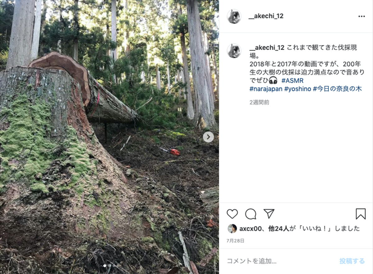 そんな奈良の木の川上から川下の流れをお伝えするべく「奈良の木のこと」では、SNSを使った動画投稿を募集! 投稿方法は、インスタグラムで「#今日の奈良の木」をつけて、お気に入りの奈良の木の動画を投稿するだけ!投稿いただいた動画の中から、公式インスタグラム@naranokinokotoでリポストさせていただきます♪
