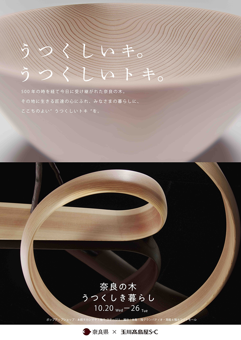 10月20日(水曜日)から10月26日(火曜日)まで東京都 玉川髙島屋S・Cにて、<奈良の木 うつくしき暮らし>が開催されます!