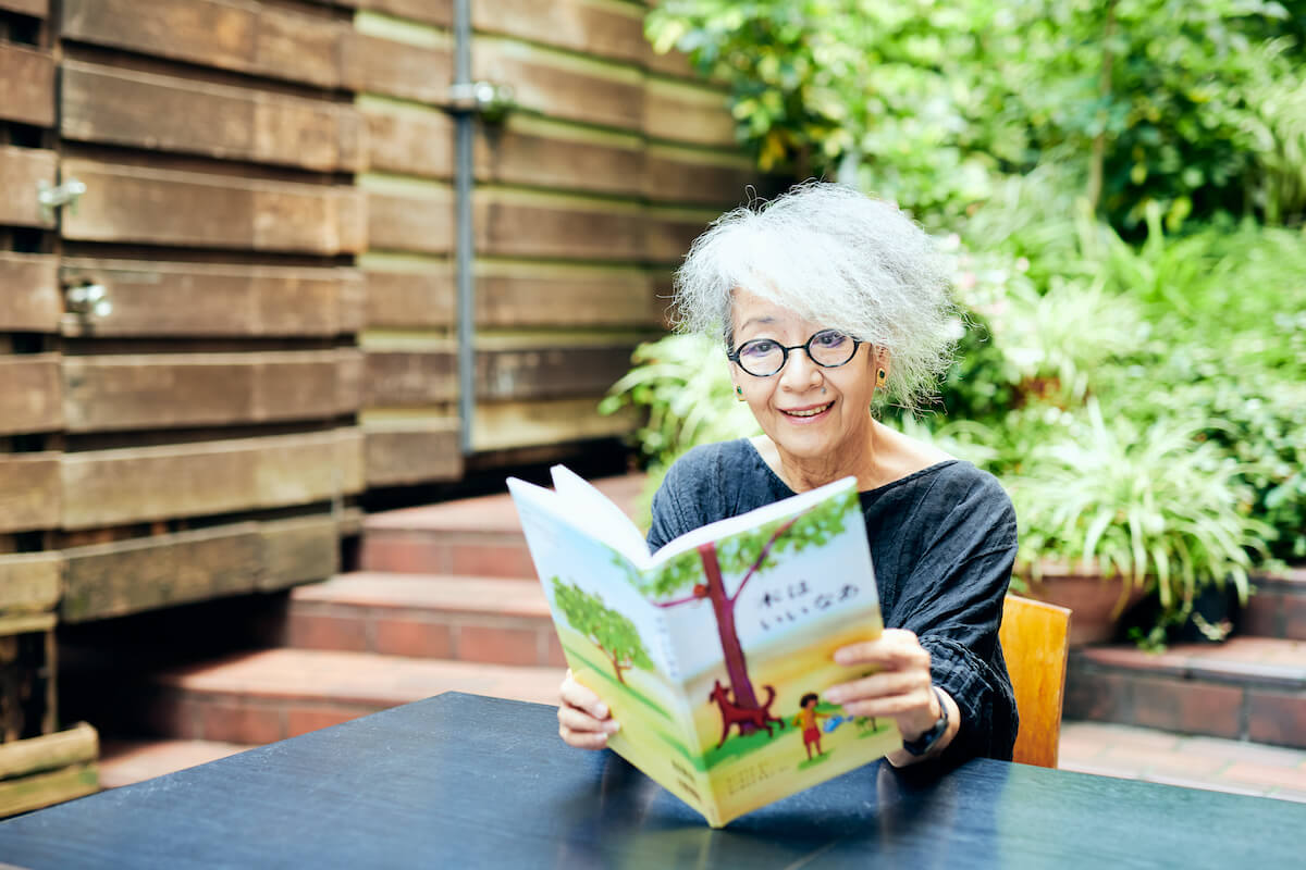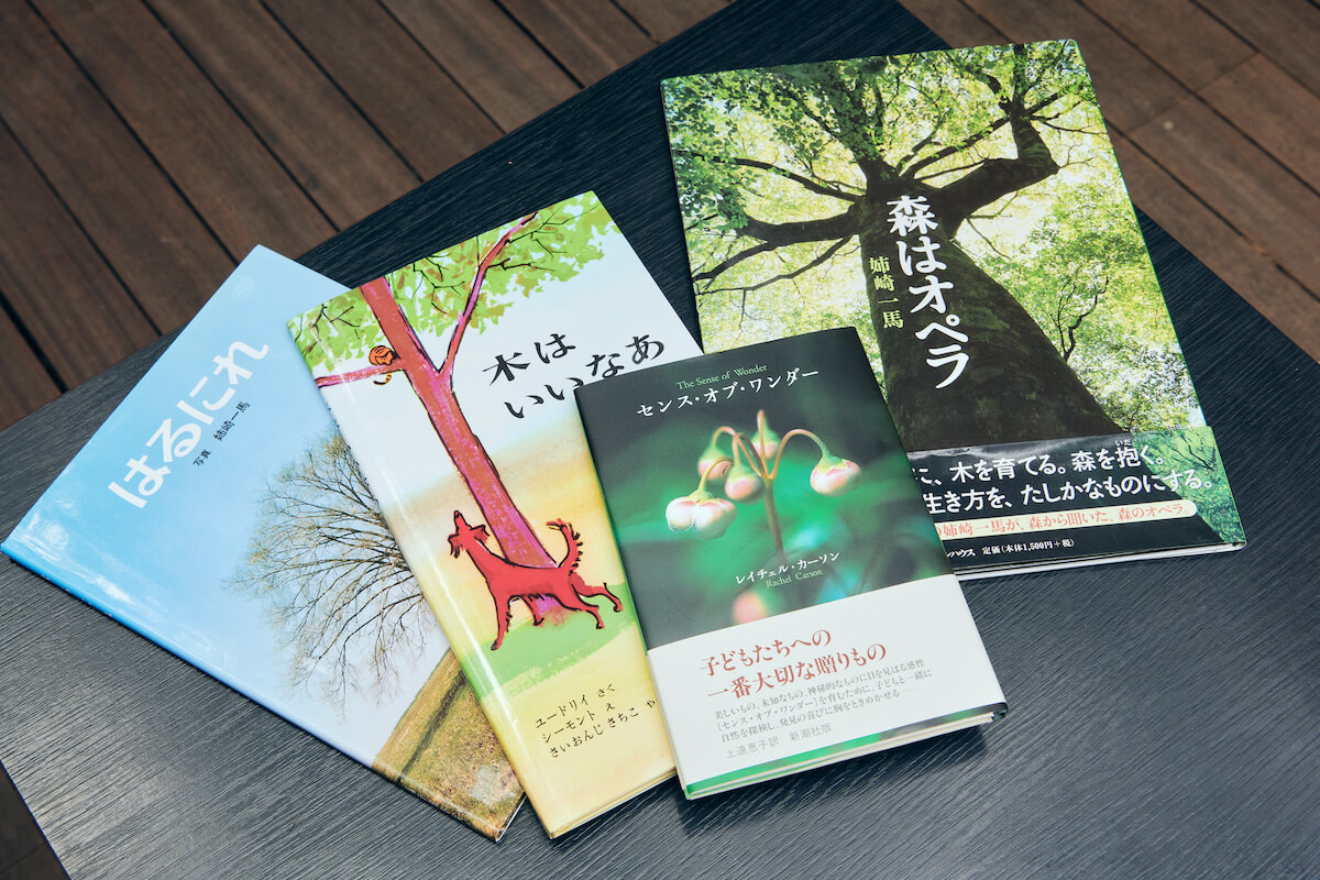 木の絵本も大好きだという落合さん。インタビューの際にはおすすめの木の本をお持ちいただいた。