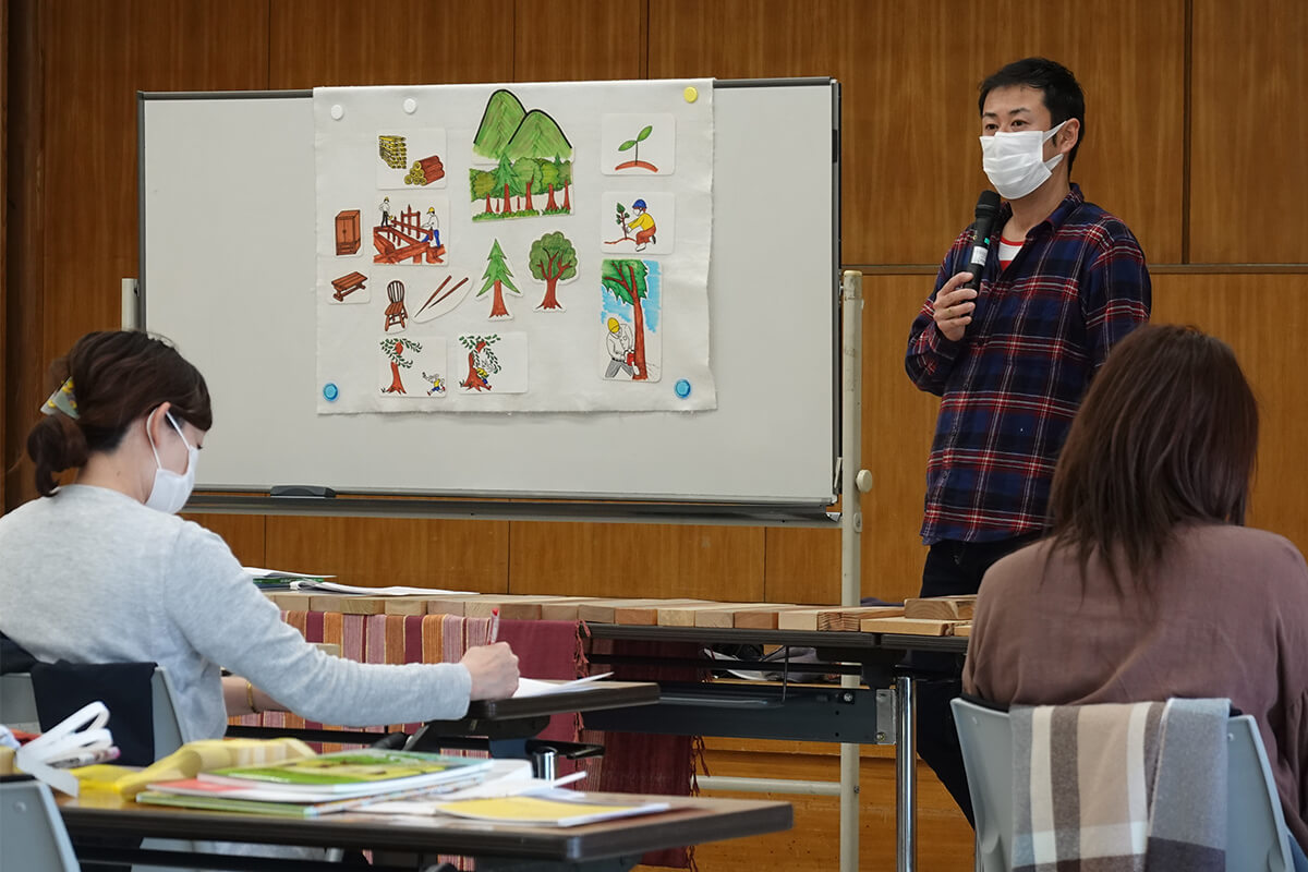 「木育インストラクター資格」を生涯学習としての資格ではなく、実践・伝える役割として活動していってほしいです。木育のポイントは「体験を通して気づく、伝える」こと。まずは木材利用、木に関心を持ってもらい、そこから「食」などさまざまな分野との繋がり、そして大切さに気づいていってくれたら嬉しいです。