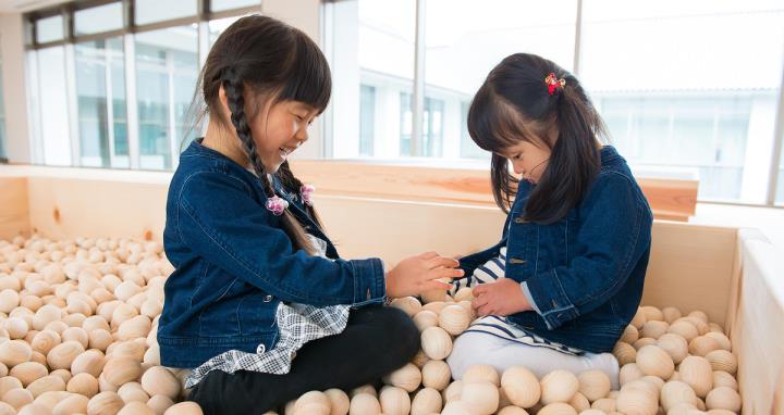 最後は地域と繋がる木育スポット、奈良県・川西町にある『川西文化会館』2階の木育広場。木の玉プールや積み木など、吉野杉・吉野桧といった香り豊かな奈良県産の木の遊具で遊ぶことができます。子どもはもちろん、親同士のコミュニティの場としても活用できるので、木育を通して人との繋がりを育むことができるのも魅力のひとつです。