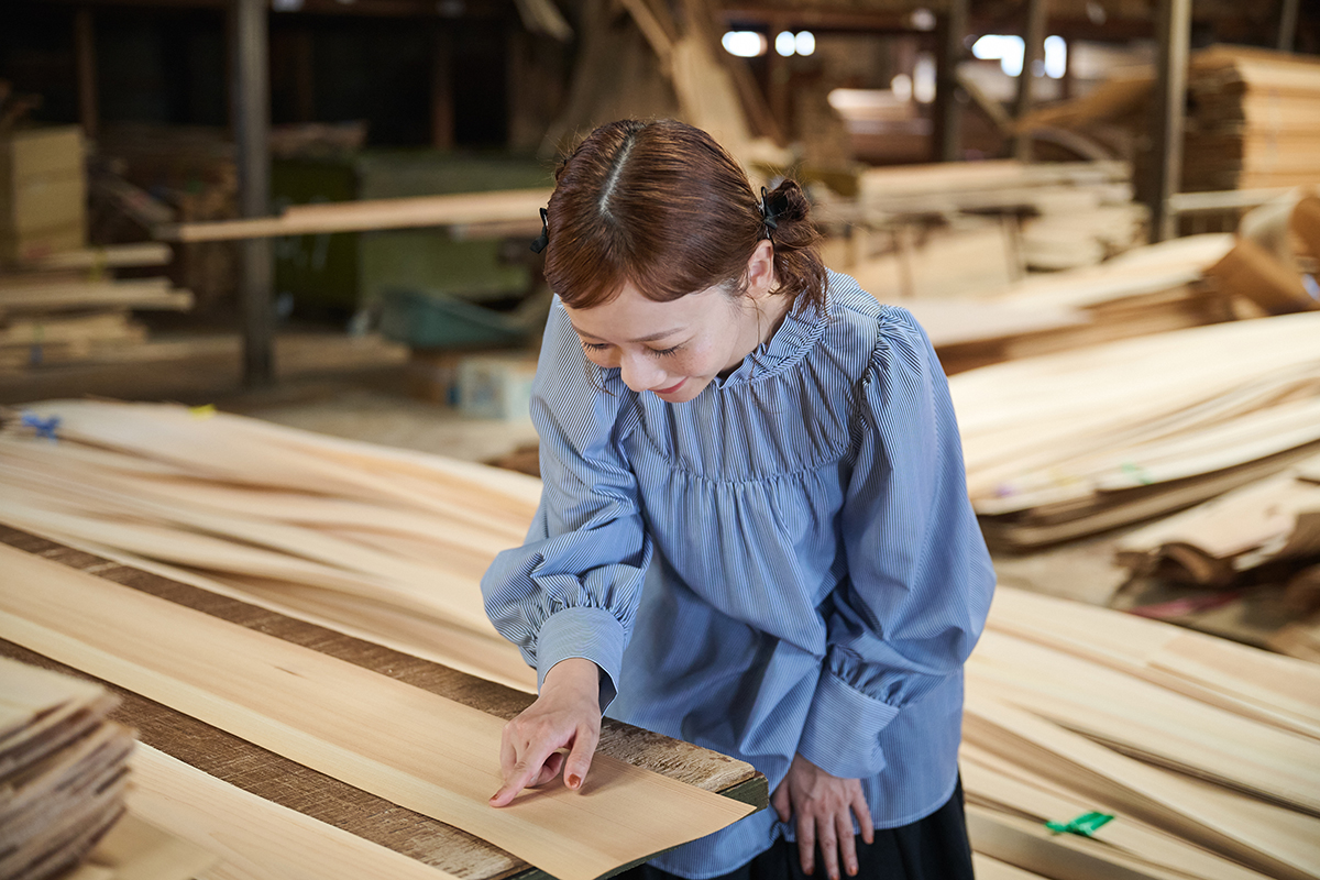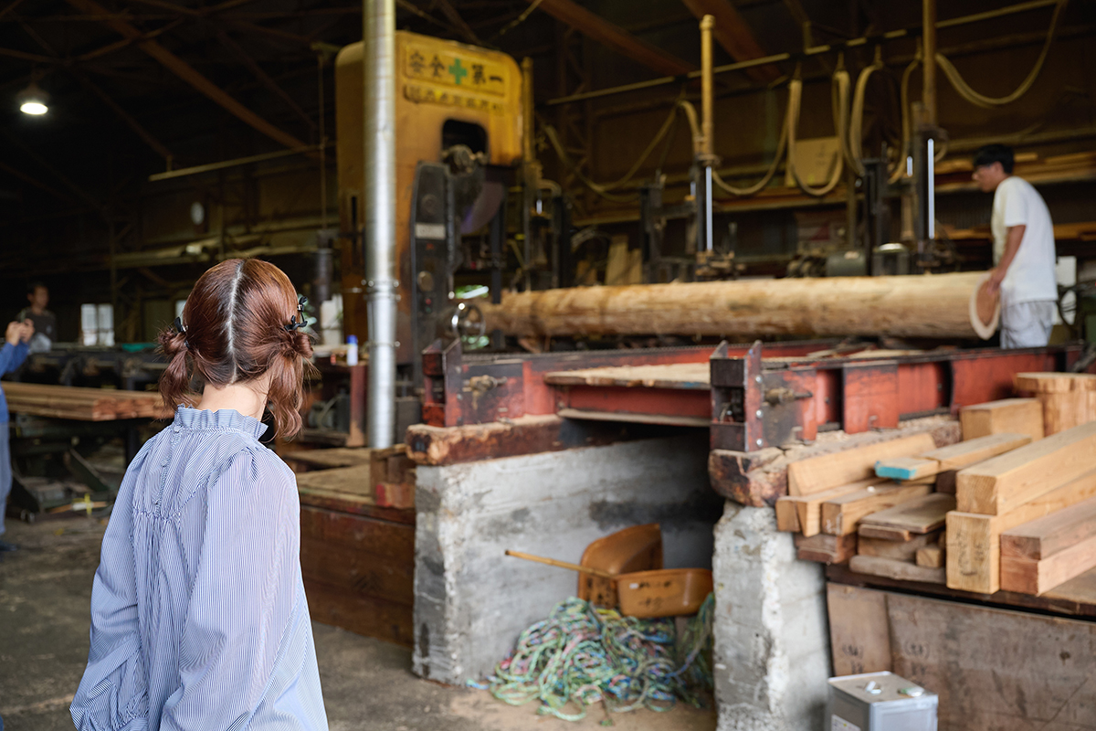 「創業時に樽の材料から初めて、そこから柱など建具の製材をされていたそうです。周りに同じような製材所ができると、丸さんのお父さんは『売るのは下手。競争ができない』といって、誰もしていないことをしようと集成材の製造を始めた。今度は集成材業者が増えるとまた『競争はできない』と、変わった形でも対応可能な受注生産の集成材づくりをするようになったと聞いて、なんて柔軟な考え方でしょう!すごく前向きだと思いました。伝統と歴史がある吉野材を扱う方のイメージが変わりました」