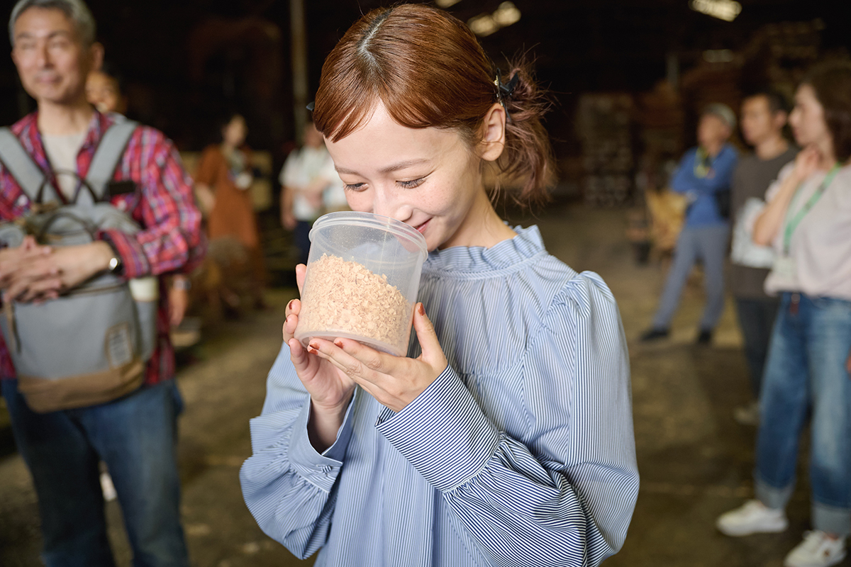 今回は、奈良県出身でモデル、タレント、女優として幅広く活躍している三戸なつめさんが、2日目(10月2日)に初参加。ミニツアーやワークショップなどを通じて木の魅力に触れたその様子を、三戸さんの感想とともに紹介します。