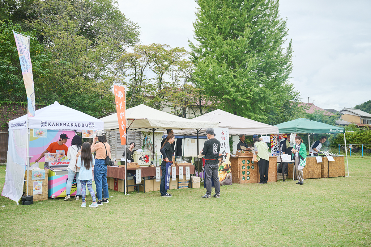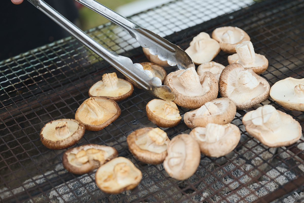 会場では、フードブースやキッチンカーも多数。吉野杉や吉野桧の粉を食べられる状態に加工しあんこに混ぜた、杉餡やきもちを販売する和菓子工房「雀堂」、地元で原木栽培する「新鮮しいたけおかもと」の焼きしいたけなど20以上の出店がありました。