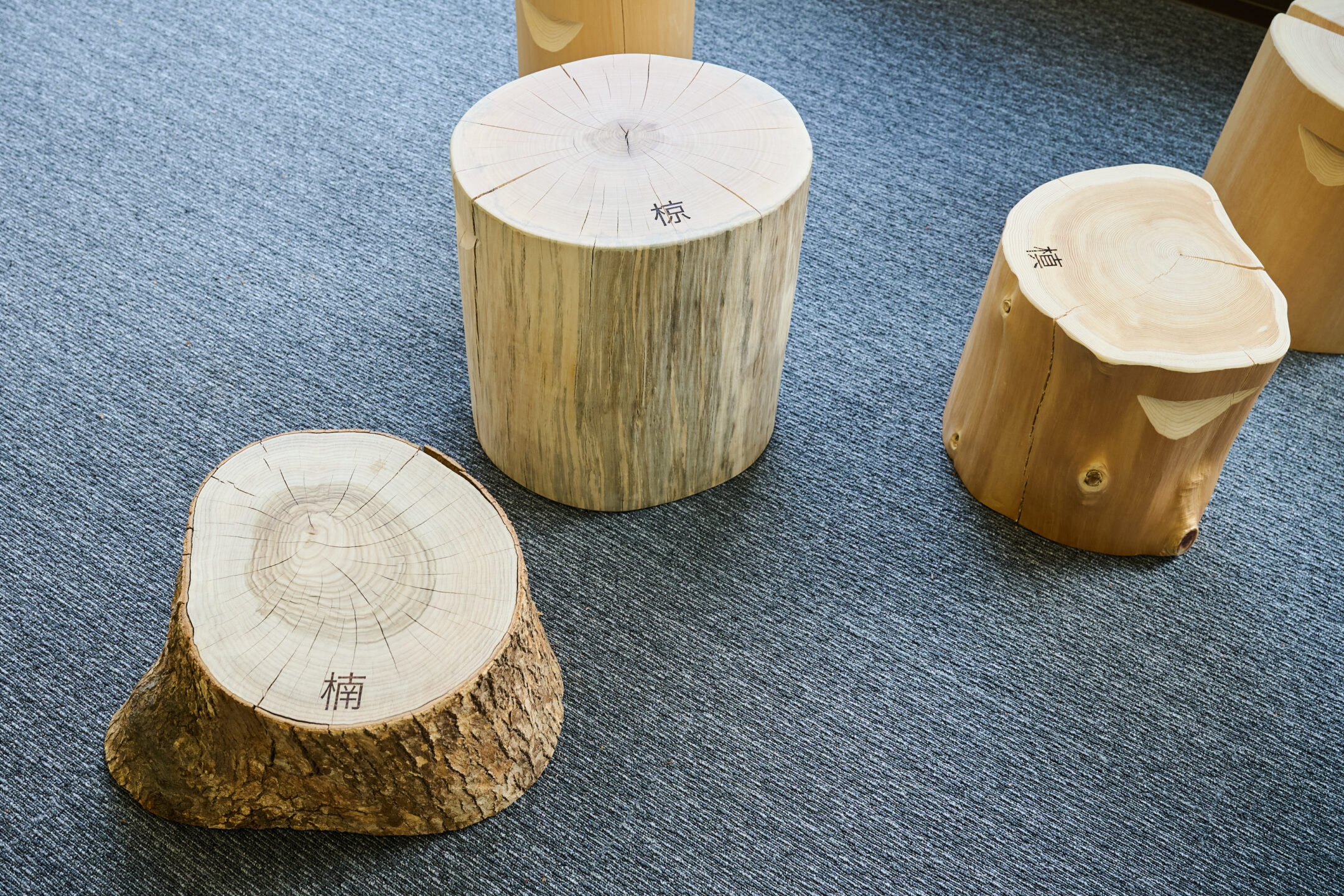 奈良県産のさまざまな樹種の丸太の椅子