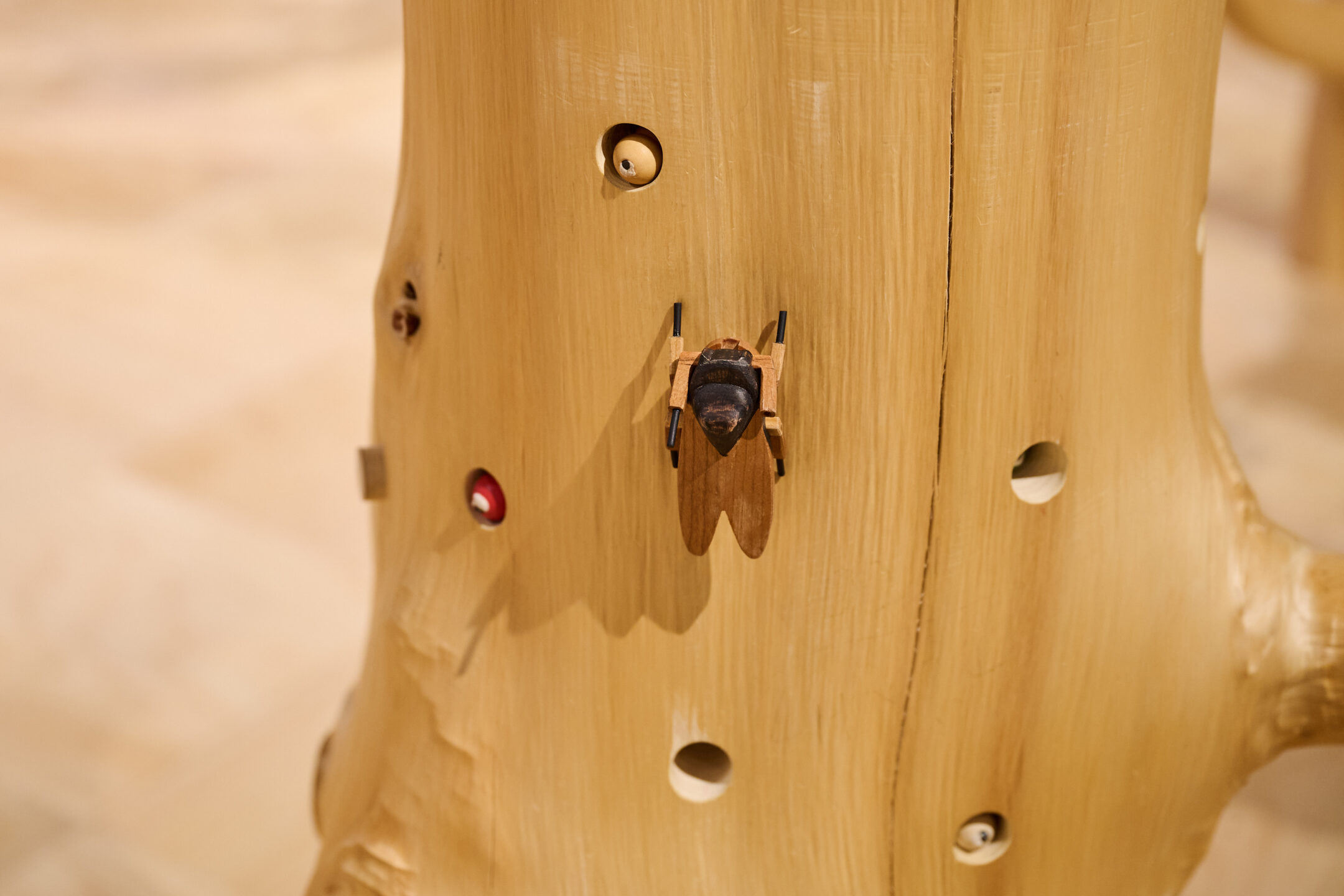 エリアに入ってまず最初に出会うのは、個性的な形をしたさまざまな樹種の自然木。木の穴に隠れた、木で出来たイモムシや、かぶと虫などを探して、昆虫採集遊びが楽しめます。