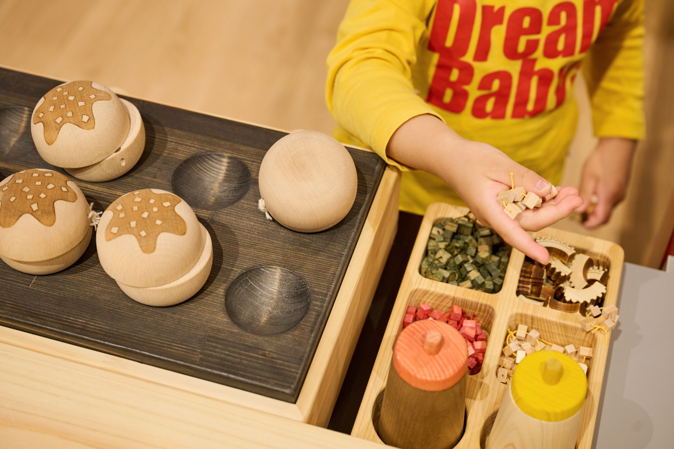 2万個の吉野桧の木の玉が入った「たまごプール」