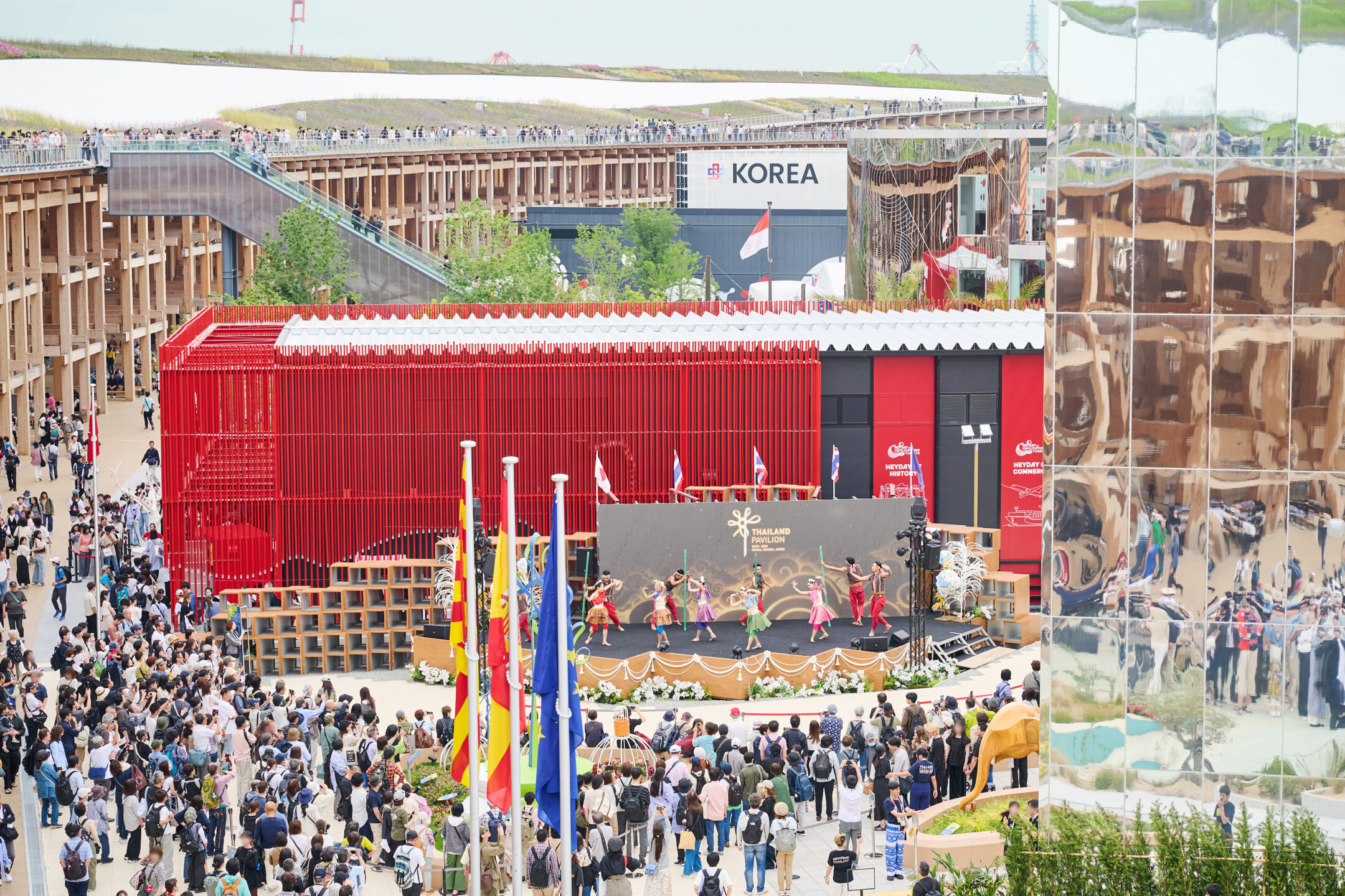 また、世界最大の木造建築物としてギネス世界記録に認定された、「大屋根リング」は圧倒的なスケール。来場者は、祝祭のような非日常の世界へと誘われます。