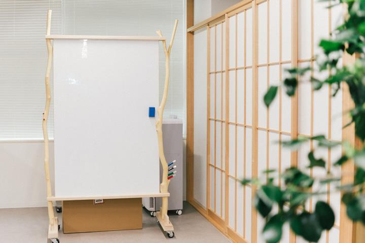 竹内:オフィスに来訪する方の反応を見ていると、まずは受付の石とマツに圧倒されるようですね。その後に杉皮張りの壁を見て「ここは料亭ですか?」と驚かれたり(笑)。あとはホワイトボードに反応する方が多いです。