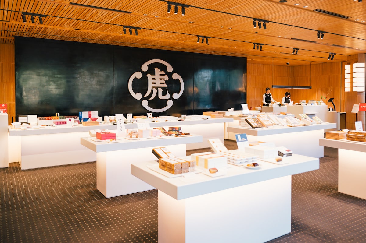 室町時代の後期、京都で創業された和菓子の老舗・とらや。そのフラッグショップともいえる赤坂店がリニューアルオープンしたのは、2018年10月のこと。世界的にも有名な建築家・内藤 廣氏によって手掛けられた店内は、壁から天井に至るまで奈良県産の吉野ヒノキをふんだんに使用。細やかな木目と柔らかな色味がおりなす温かくも洗練された空間は、和菓子のもつ繊細な美しさがそのまま表されたかのような建築となっています。
