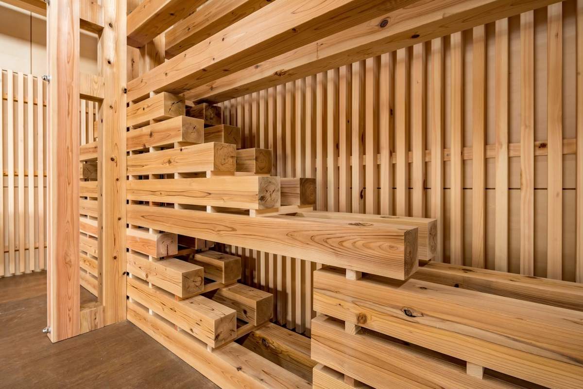 指導された古谷誠章教授は「五感に働きかけてくるような空間ができました。まず一歩入れば木の香りがします。この香りや木目が緊密で真っすぐなことや節の少ない柾目の美しさに、さまざまな文化が加わった吉野材の素晴らしさを知ることができる場所になりました」とのこと。