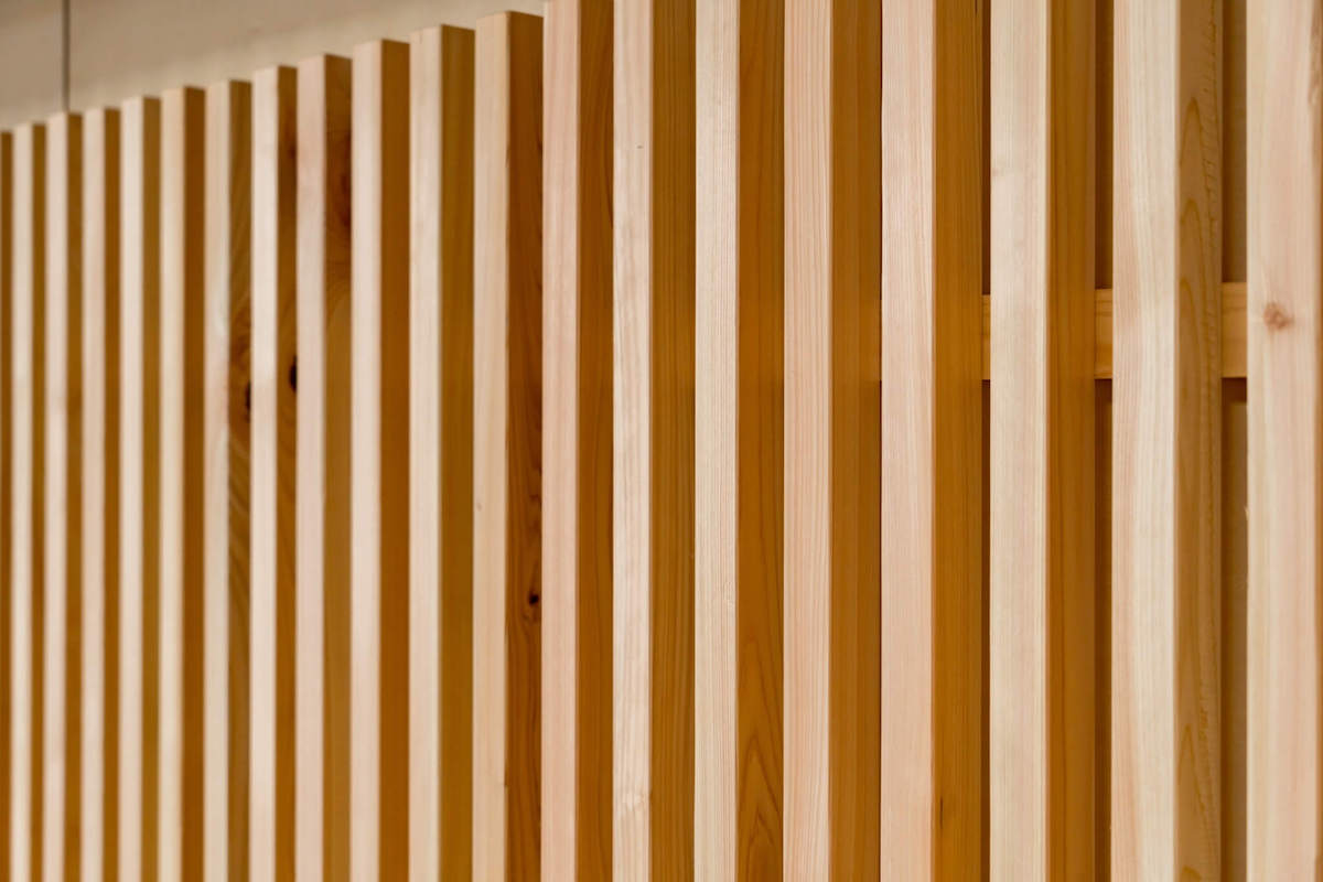 吉野スギと吉野ヒノキを交互に使ったベンチの座面