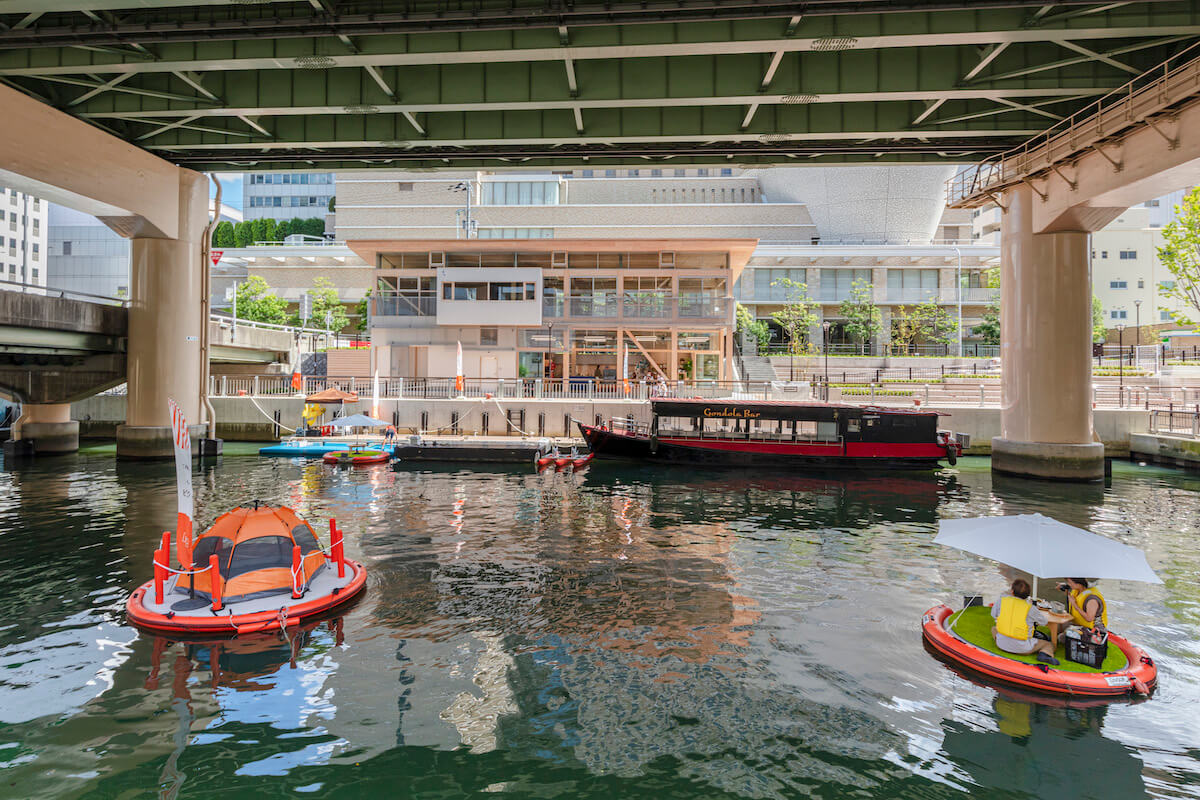 2021年8月、大阪の中之島と道頓堀をつなぐ東横堀川にかかる本町橋のたもとにオープンした「β本町橋」。東横堀川の水辺のまちづくり活動を16年続けてきた仲間で立ち上げた「一般社団法人水辺ラボ」が、時代とともに変化する「まち」で、さまざまな人々をつなぐ拠点として立ち上げた“水辺の実験基地”です。