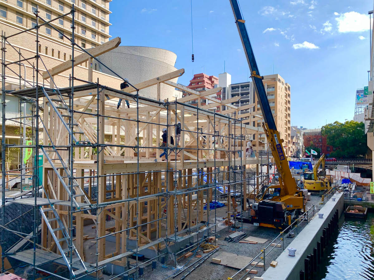 高橋勝さん「建物を建てるというのは、ひとつの“祭り”のようなものだと考えていて、今回β本町橋を建てるにあたって、昔からある風景を復活させたいという思いから地鎮祭や上棟式を行いました。大都会の中でいきなり木造建築の建て方(※)が始まるというのは、なかなかインパクトがあったでしょうし、みんなの思い出に残るような造り方ができたんじゃないかなと思います」