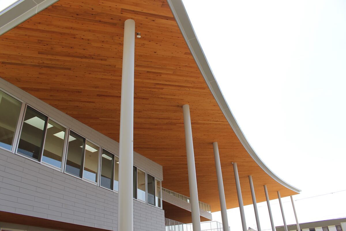 大きな屋根が特徴的なこの施設を設計するにあたって意識されたポイント、また奈良の木を利用した経緯と感想について設計を担当されたGEO-GRAPHIC DESIGN LAB.の前田 茂樹さんに伺いました。