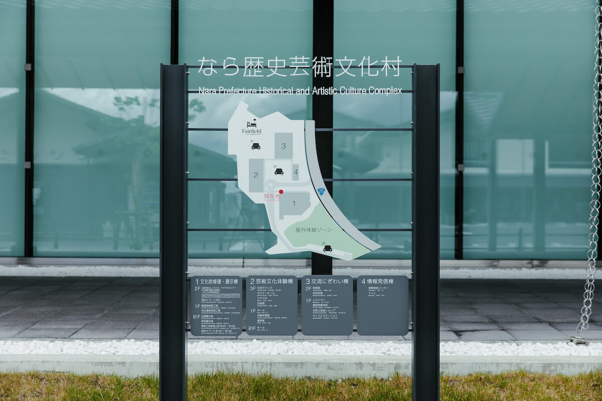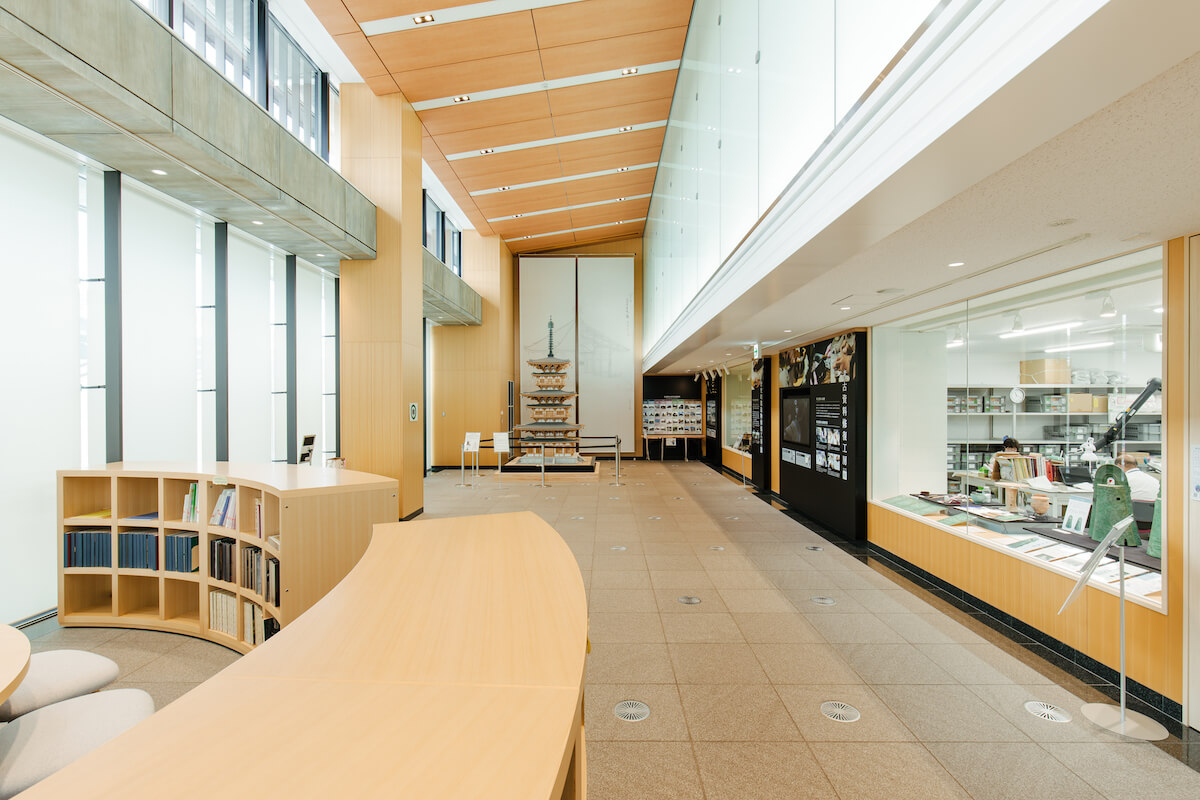 なら歴史芸術文化村は主に、「文化財修復・展示棟」、「芸術文化体験棟」、「情報発信棟」、「交流にぎわい棟」の4つの棟で構成されています。各棟について詳しくみていきましょう。