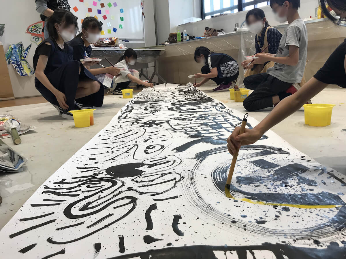 抽象画に挑戦する小学生向けアートプログラム 「ゴーカイに色遊び」の様子